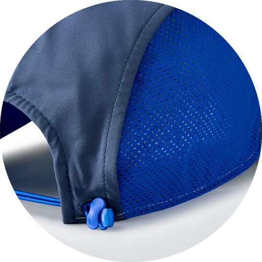Chroń twarz przed słońcem i deszczem. Elastyczny materiał jest miękki i oddychający, a wbudowany pałąk odprowadza pot.